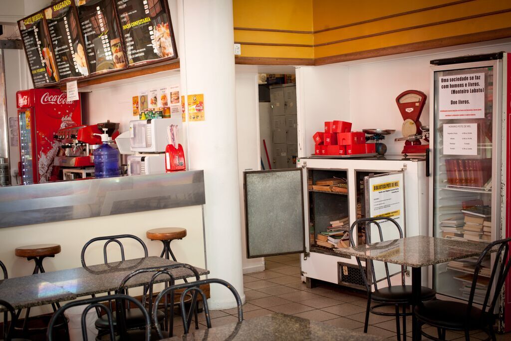 Entrar para comprar o pão e sair com um livro em mãos. É assim a rotina dos clientes de uma padaria de Curitiba, no Paraná. É que o local abriga duas geladeiras velhas que ganharam nova serventia depois de aposentadas: elas viraram bibliotecas.